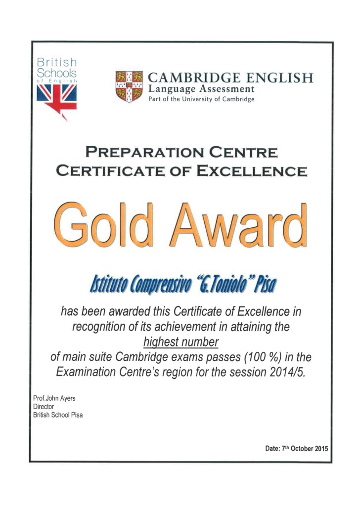 1) riconosce nelle certificazioni Cambridge un percorso strutturato e valido per favorire l’apprendimento progressivo della lingue inglese;