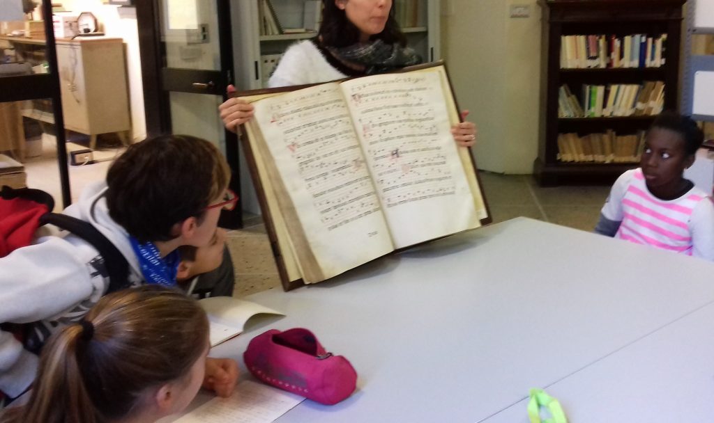 Classi prime della scuola media in visita alla Bibliotheca Cathariniana di Pisa alla scoperta di codici medievali, scrittura e cultura del passato