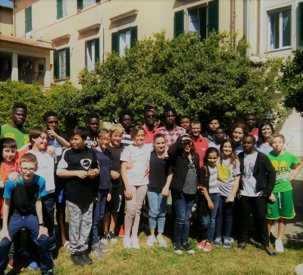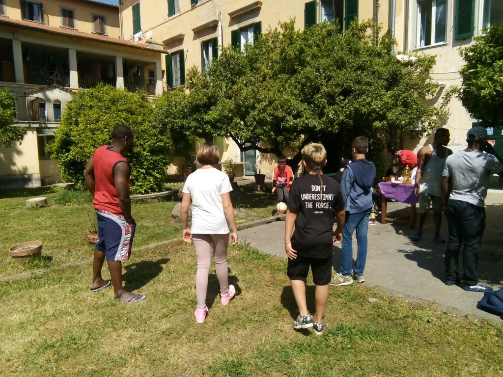 Centro accoglienza migranti della Croce Rossa. Incontriamo volontari e giovani stranieri, ascoltiamo la loro storia. Empatia, conoscenza, vicinanza. E pallone!