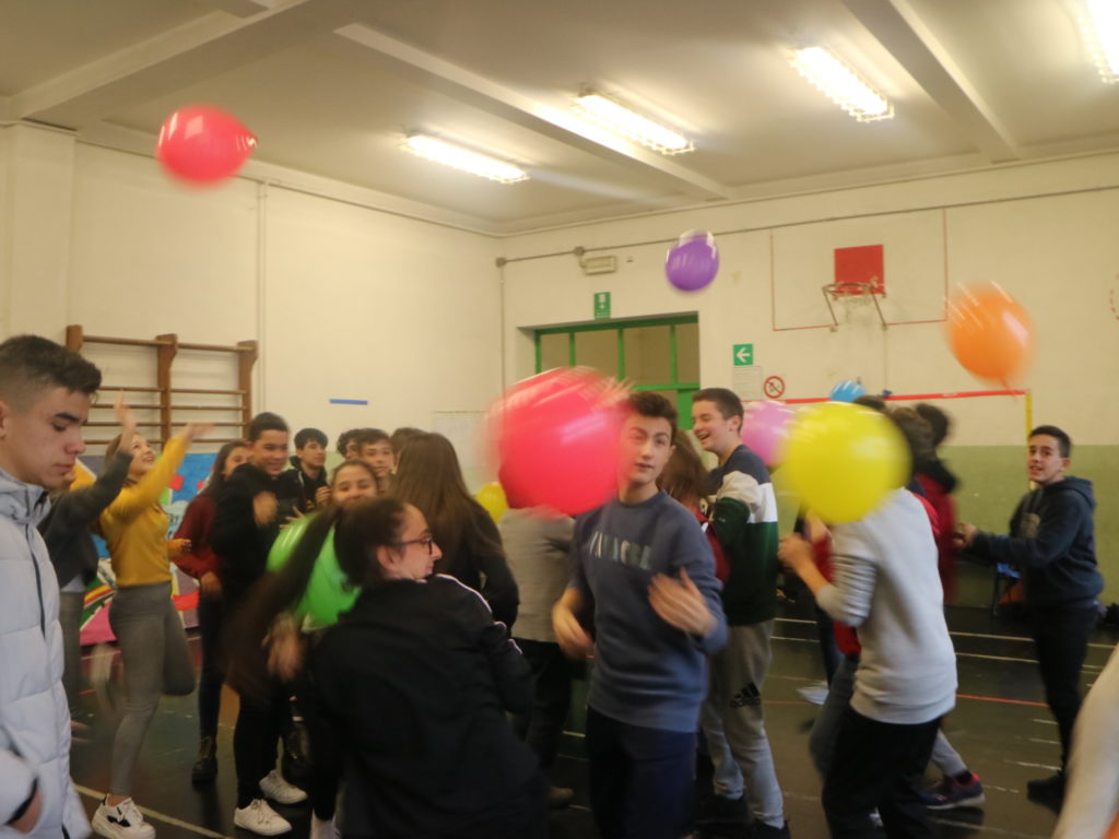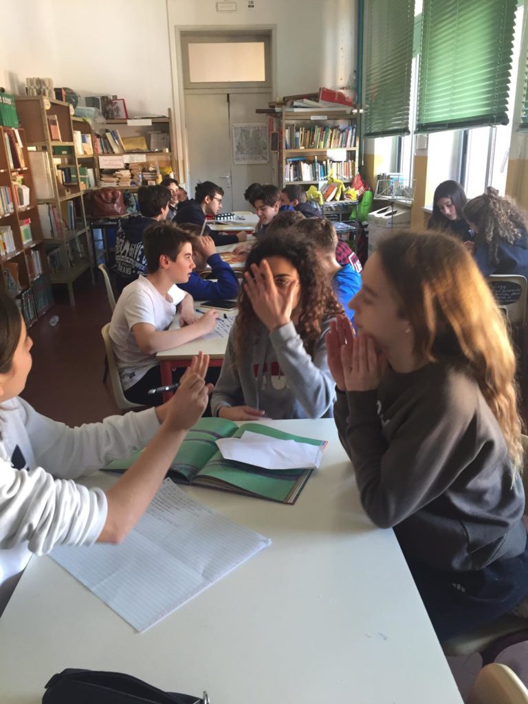 Ragazzi italiani e spagnoli lavorano insieme. Uno dei tanti momenti, impegnativi o di svago, del fantastico scambio che ogni anno facciamo alla scuola media