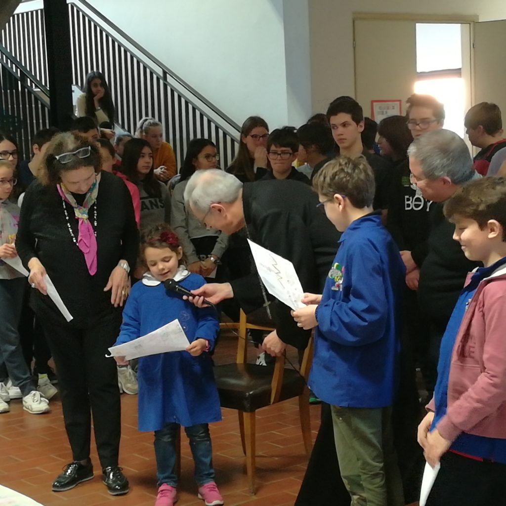 E’ stato un momento interessante. I ragazzi hanno posto domande sul consumismo e sull’ecologia, sulla ricerca della felicità, la condivisione dei beni della Terra e le risposte dell’Arcivescovo Giovanni Paolo Benotto, in visita alla scuola Primaria Toti e alla scuola Secondaria di primo grado di Barbaricina, sono state molto chiare e coinvolgenti.