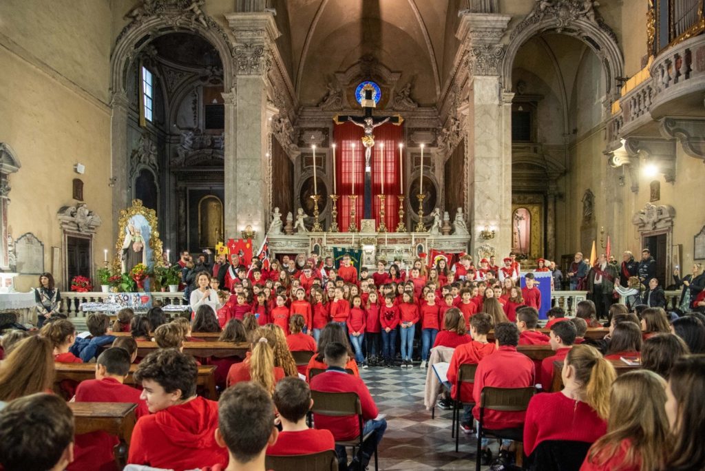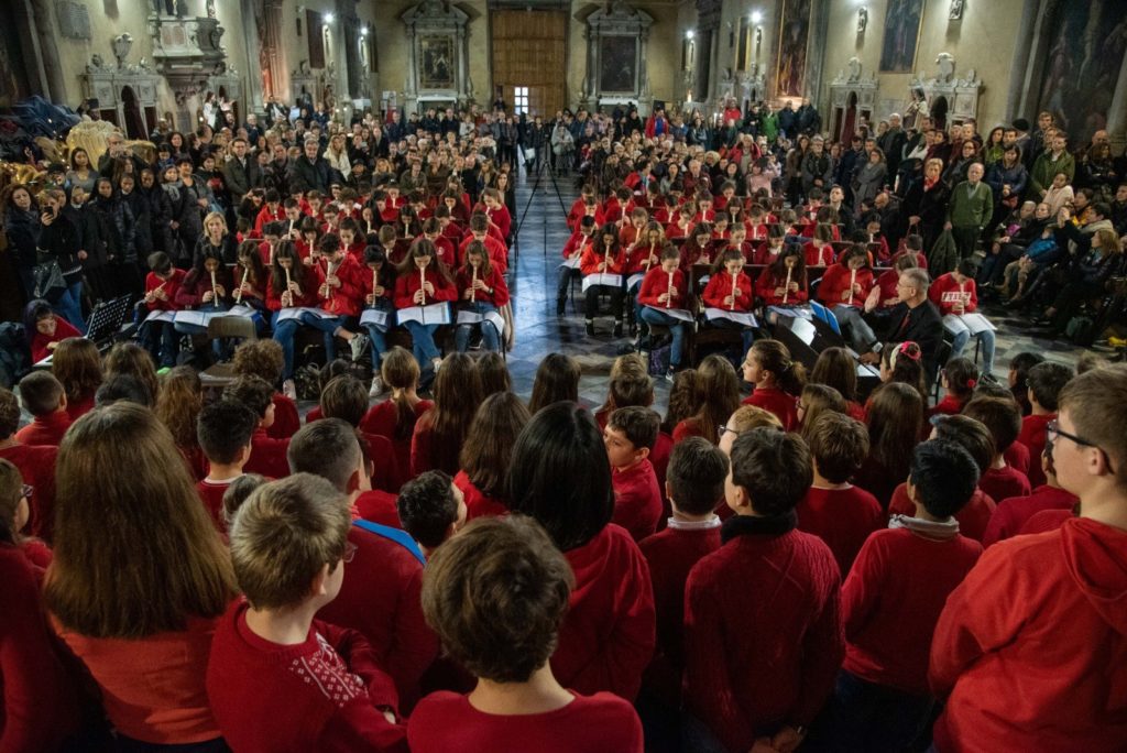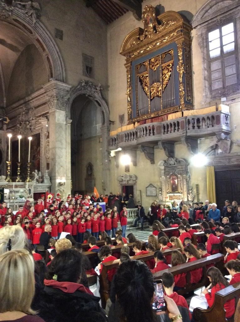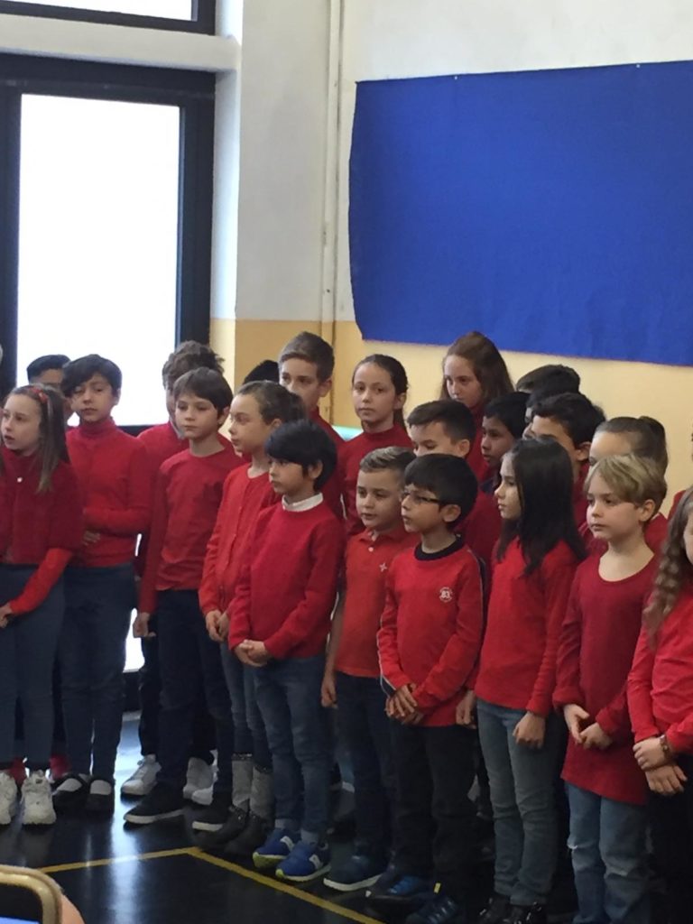 Il coro era costituito dalle classi quinte di Biagi e Cambini e dalle classi prime di Toniolo centrale. Orchestra glockenspiel da seconde e terze secondaria centrale, e alla fine brani eseguiti dall’orchestra dell’indirizzo musicale.