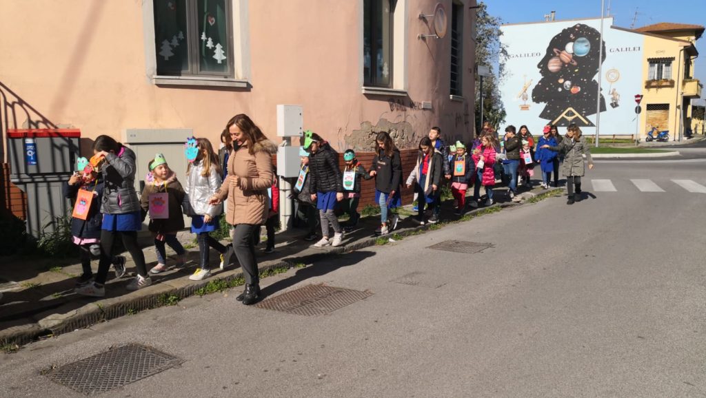 La classe 5a della scuola Toti a spasso per le mura alla scoperta delle invenzioni di Galeo Galilei per omaggiare il 460 esimo anno della nascita del grande scienziato