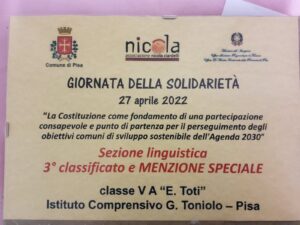 Classe V Toti – Terzi classificati e menzione speciale alle Giornata della solidarietà.