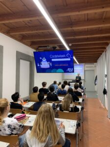Stamani, giovedì 20/10, alcune classi terze della secondaria hanno partecipato al workshop “Le strade della programmazione “ svolgendo un’attività di coding offline (con carta e penna) organizzata da EURid, l’organizzazione no profit che gestisce .eu in seguito a nomina dell’Unione Europea. A seguire, la visita della mostra “Hello World-informatica dall’aritmomentro allo smartphone” organizzata in collaborazione con il Museo degli Strumenti Per il Calcolo”. Questo percorso interattivo ed il workshop ha coinvolto e incuriosito i nostri alunni/le nostre alunne facendo loro approfondire i concetti di “algoritmo”, “dominio” e “programmazione” e conoscere le prime icone tecnologiche come l’ Olivetti Programma 101” e il CEP (Calcolatrice Elettronica Pisana”, ovvero il primo computer in Italia e tra i primi nel mondo.