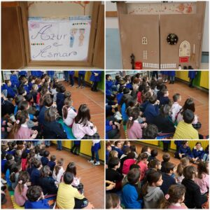 Gli alunni della classe 4B raccontano la storia di Azur e Asmar con il Kamishibai ai bambini delle classi 1A e 1B