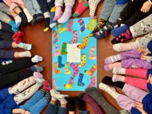 LA CLASSE PRIMA DELLA SCUOLA PRIMARIA BIAGI FESTEGGIA LA GIORNATA DEI CALZINI SPAIATI PERCHE’ LA DIVERSITA’ E’ RICCHEZZA.