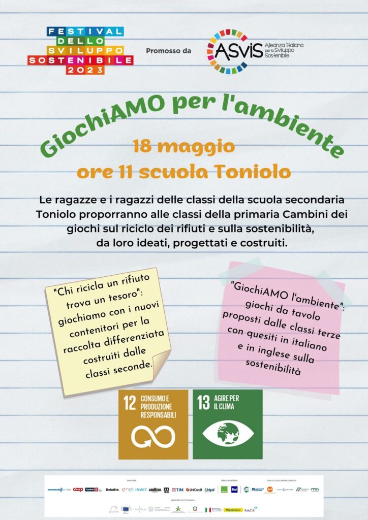 La nostra scuola partecipa con un’attività di giochi sull’ambiente. Qui il link all’iniziativa sulla piattaforma del Festival: https://2023.festivalsvilupposostenibile.it/cal/994/giochiamo-per-lambiente