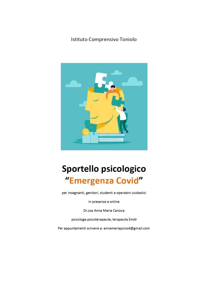 Da tempo è attivo nel nostro istituto lo sportello di ascolto per studenti (scuola secondaria), genitori e personale scolastico; è tenuto dalla dott.ssa Olivia Orlandi del CRED il giovedì presso le sedi centrale e succursale della scuola secondaria. Ad esso si affianca lo sportello di ascolto legato all’emergenza Covid, tenuto dalla dott.ssa Annamaria Canova, su appuntamento. Per accedere da parte degli studenti è necessaria l’autorizzazione dei genitori.